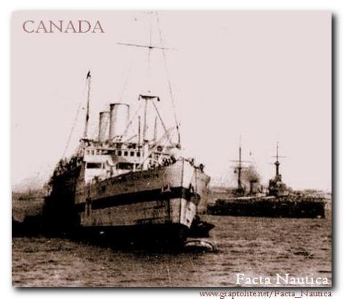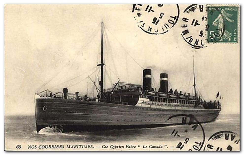 ---------10 sierpnia 1914 roku francuska marynarka wojenna zarekwirowała w Marsylii statek pasażerski ss CANADA (9684 BRT), należący do towarzystwa Cyprien Fabre. Był to nowoczesny na owe czasy parowiec, zbudowany w latach 1911-12 w stoczni Forges et Chantiers de la Méditerranée w La Seyne-sur-Mer (Toulon, Francja). Do wybuchu I wojny światowej kursował na trasie Neapol/Marsylia - Nowy Jork, przewożąc głównie europejskich emigrantów. Zabierał on 120 pasażerów w klasie I, 196 w klasie II oraz 1800 bezkabinowych.