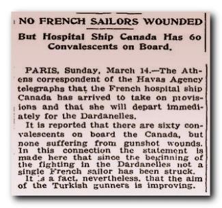 Informacja o statku szpitalnym CANADA zamieszczona w dzienniku New York Times z dnia 16 marca 1915 roku.